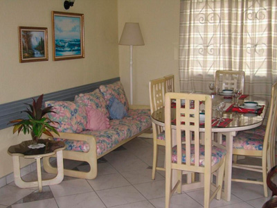 CHERRY VILLA is tastefully furnished and is fitted with ceiling fans in all rooms. The comfortable, spacious living/dining room is equipped with broadband Internet, cable TV, CD player and radio/cassette. Other amenities include four telephones (1 in the livingroom,1 in the kitchen, 1 in each bedroom) for local calls, which are free. A credit/debit card is needed to make a long distance or overseas call.